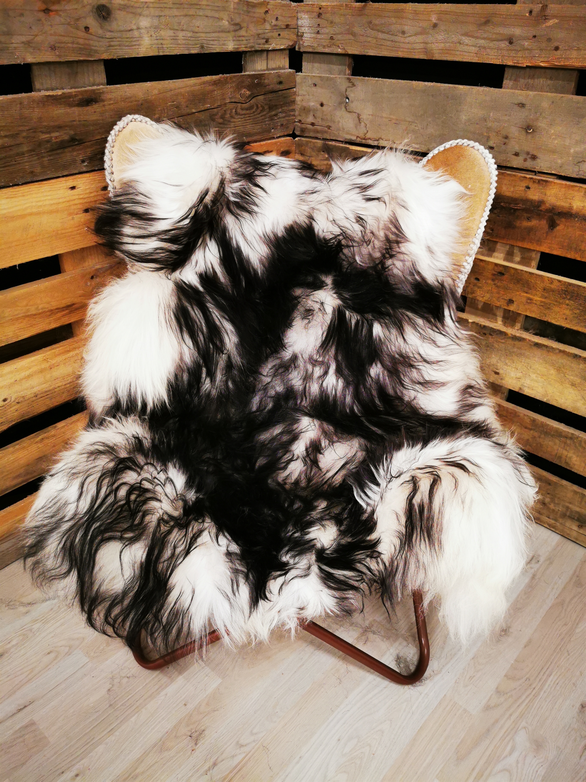 The skin measures 120cm. "Discover the breathtaking beauty of our Icelandic "Silver Shadow" sheepskin. This natural white sheepskin has been enchanted with elegant gray tones and decorative black tips that create a visually impressive contrast. Each sheepskin is carefully selected for its high quality and softness, providing a luxurious and comfortable experience. The Nordic inspiration in the "Silver Shadow" name reflects the beautiful landscape and the mysterious atmosphere of Iceland. This sheepskin is not only a beautiful decoration, but it also adds warmth and coziness to any room. Use it as an elegant rug over a chair or sofa, or place it on the floor to create an inviting atmosphere. It is also perfect for creating a cozy oasis in your reading or sleeping nook. Our "Silver Shadow" sheepskin is a unique and exclusive piece that adds a subtle Nordic charm to your home. Every detail is carefully handled to ensure you get a product of the highest quality. Treat yourself or a loved one to this beautiful Icelandic "Silver Shadow" sheepskin that brings a sense of elegance and natural beauty into your home."